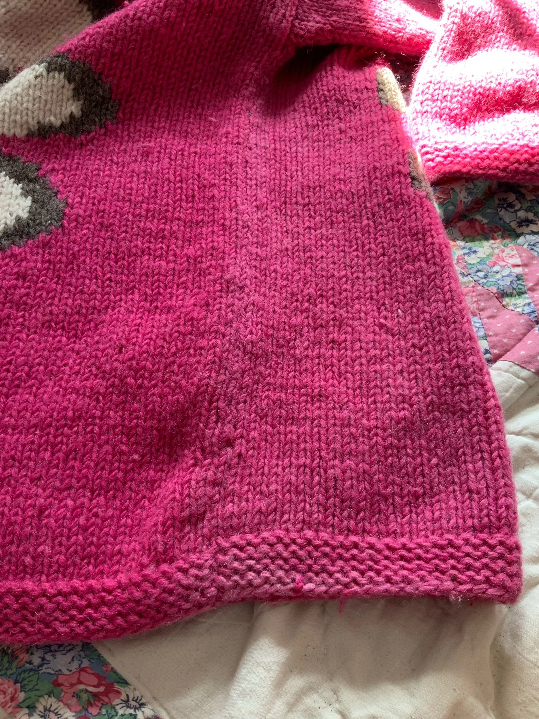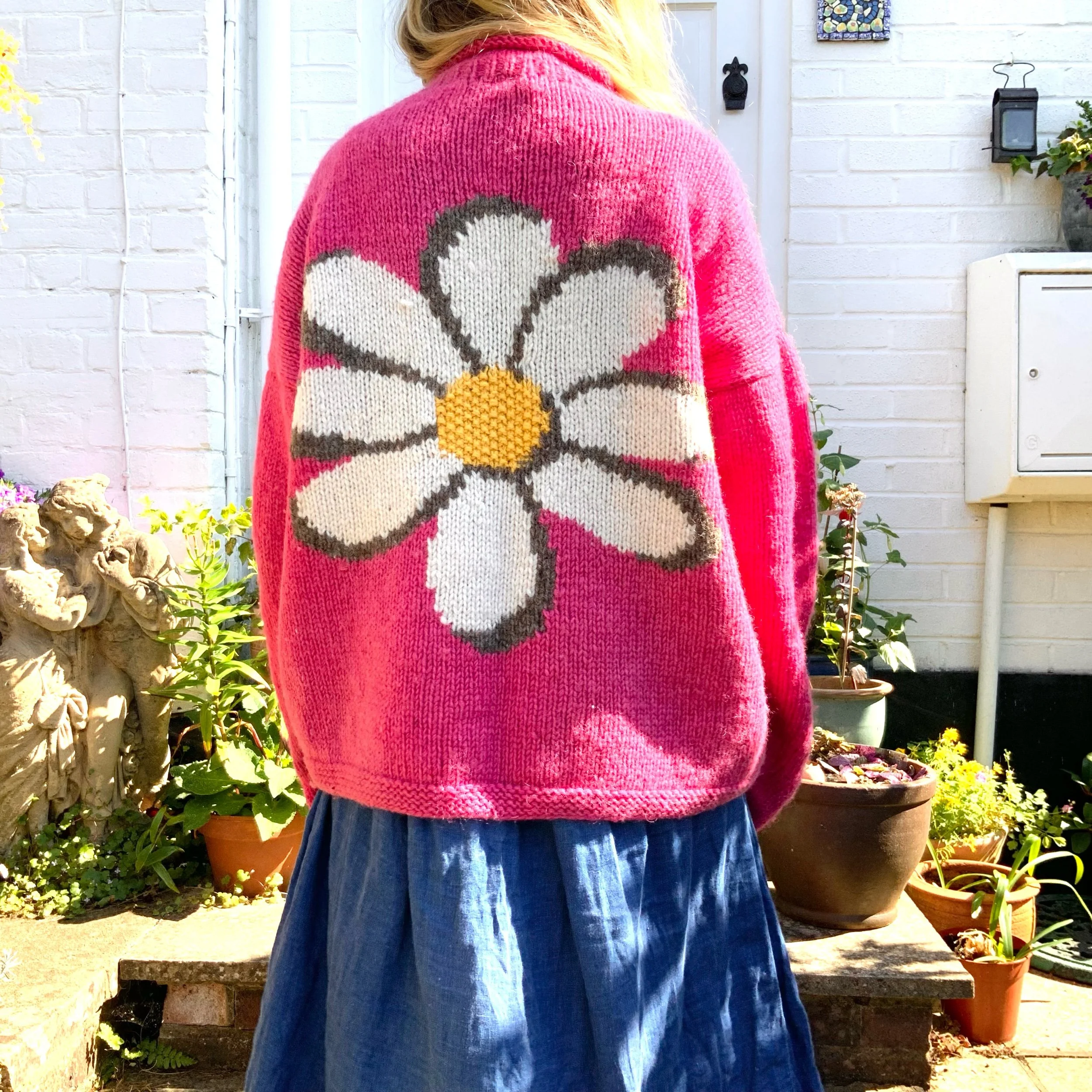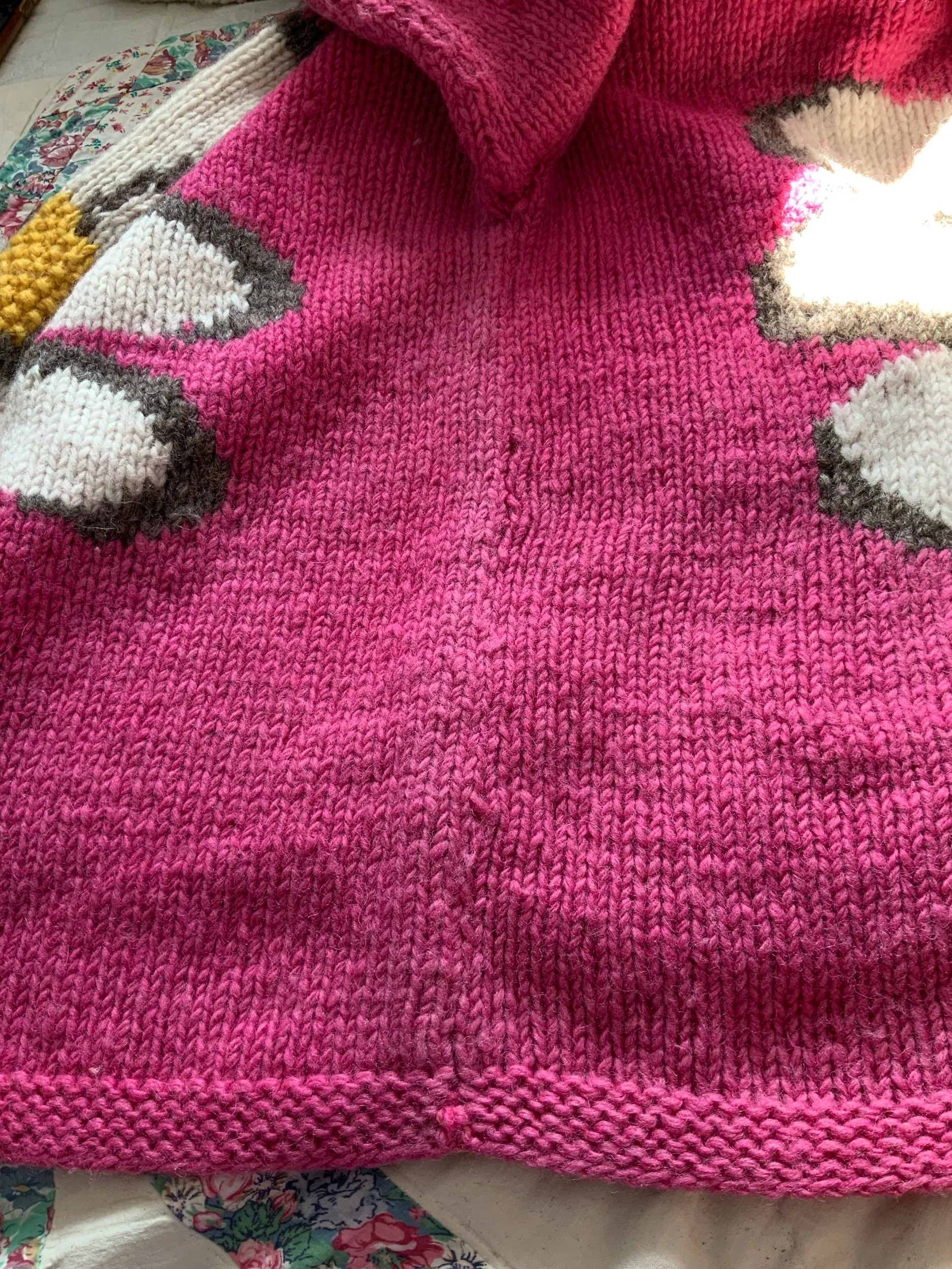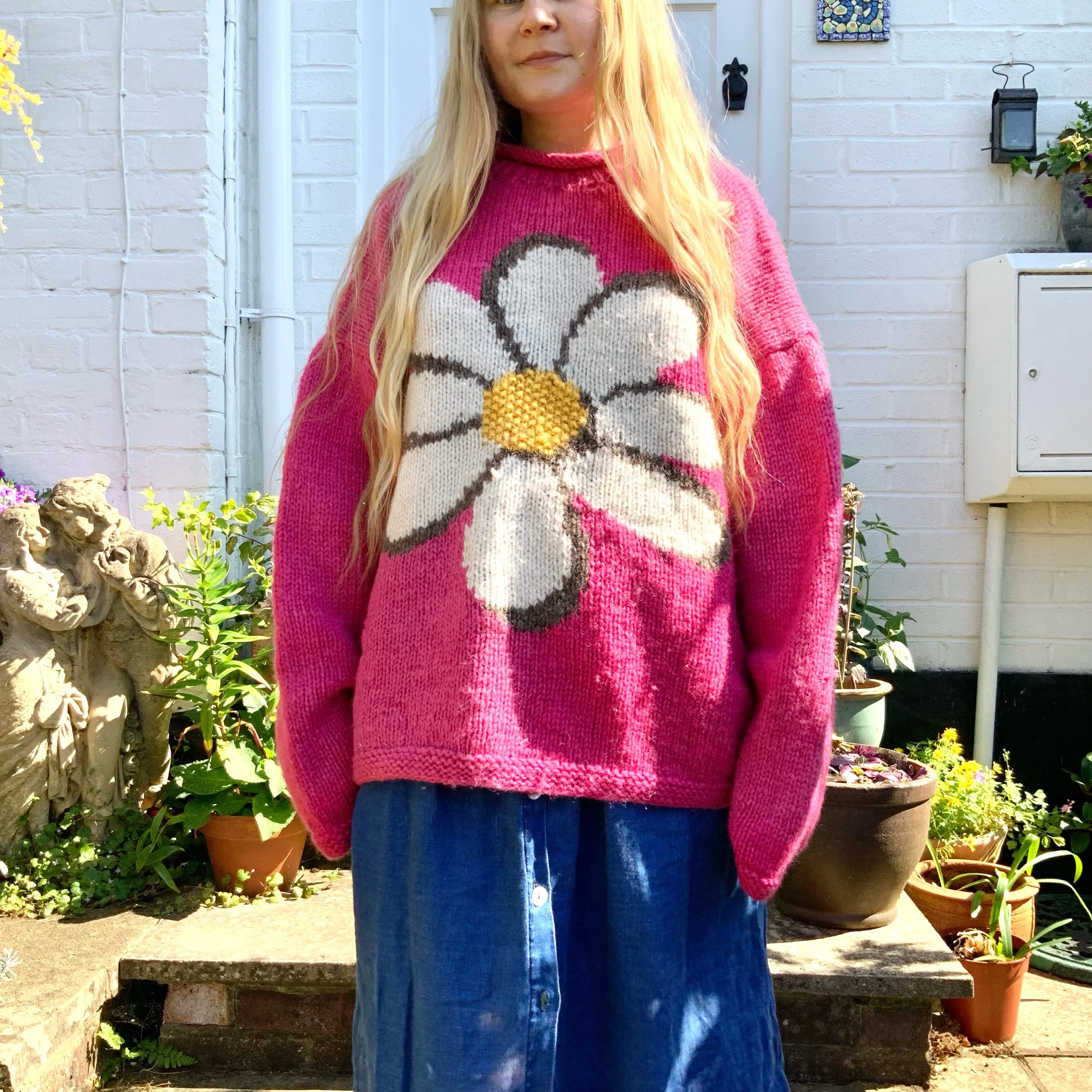 A hand made floral knit made from chunky wool by the brand Pachamama. No size label, I would estimate that itβs around an 2XL, shown on a size S, 5β4 height. Measurements below. :) In great condition, some slight fading around the side seams shown in the last photos. πΌ