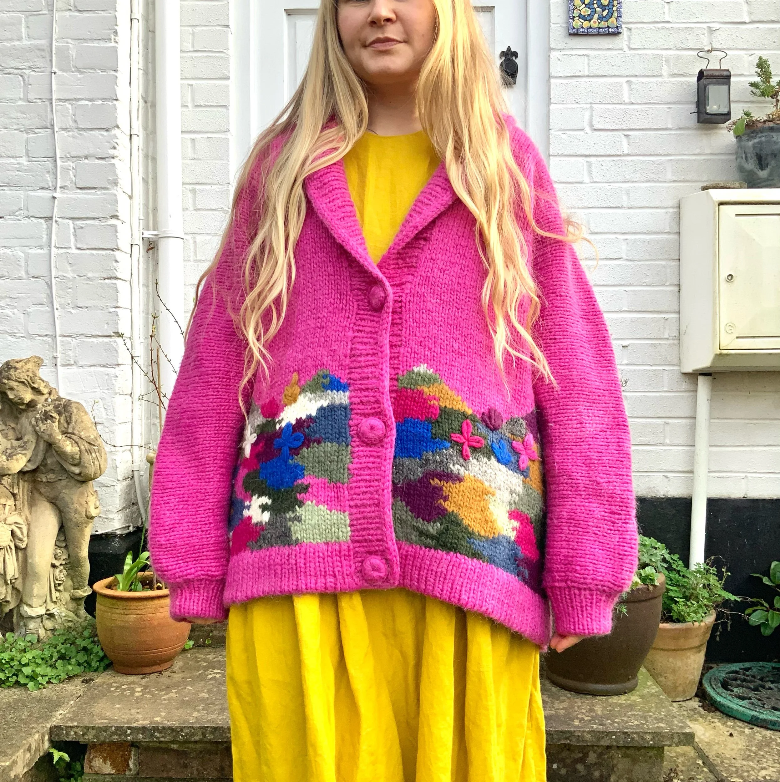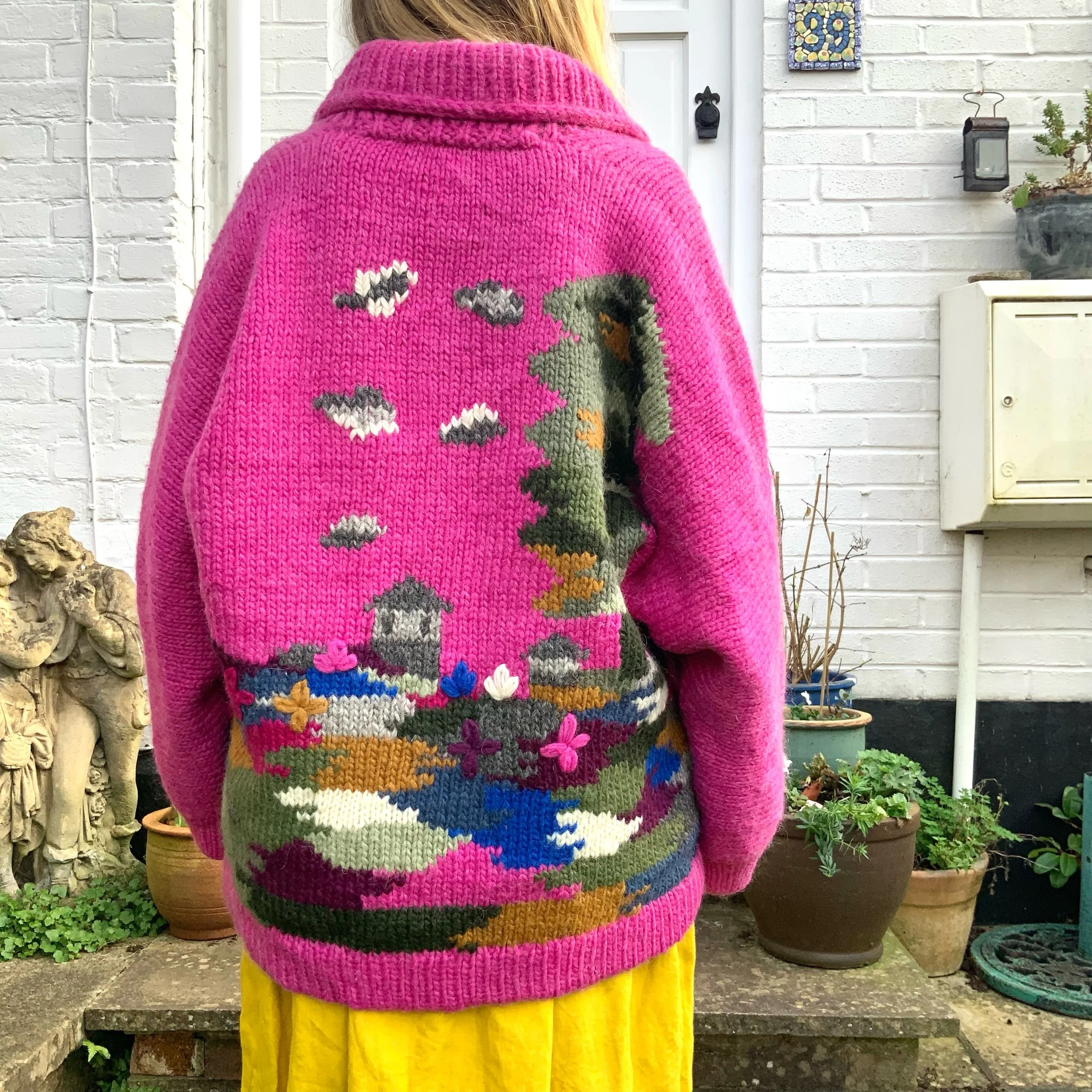 Vintage vibrant cardigan, handmade in natural wool with embroidered details. π‘ The brand is Icelandia and Iβd estimate that itβs a size 2XL, measurements below. :) Shown on a size S, 5β4 height. In great condition. β¨
