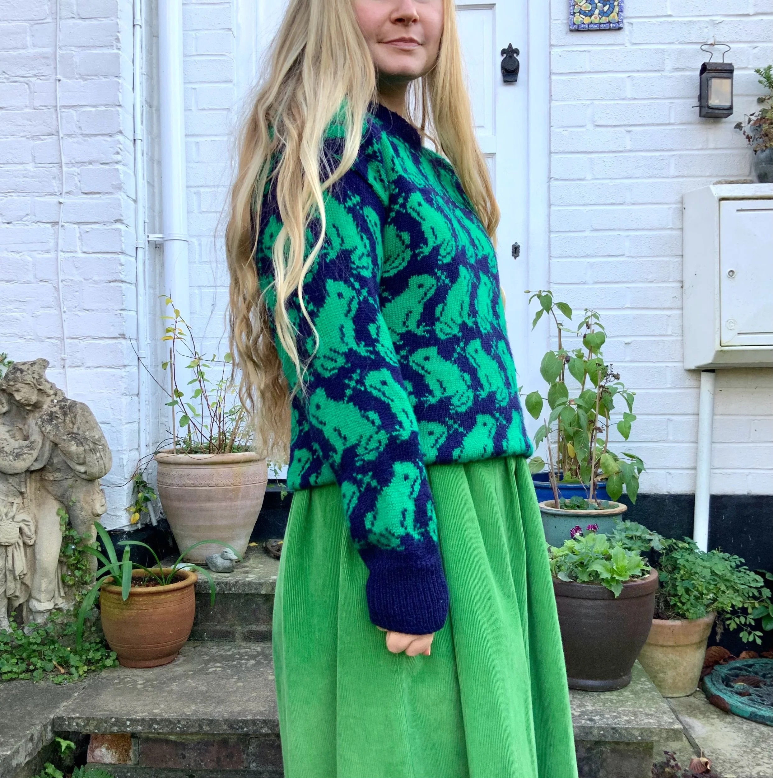 Vintage handmade frog jumper! Approx a size S, measurements below. :) Shown on a size S, 5’4 height. Feels like it’s been made from wool mix, might be pure wool but not sure. In great condition. ✨