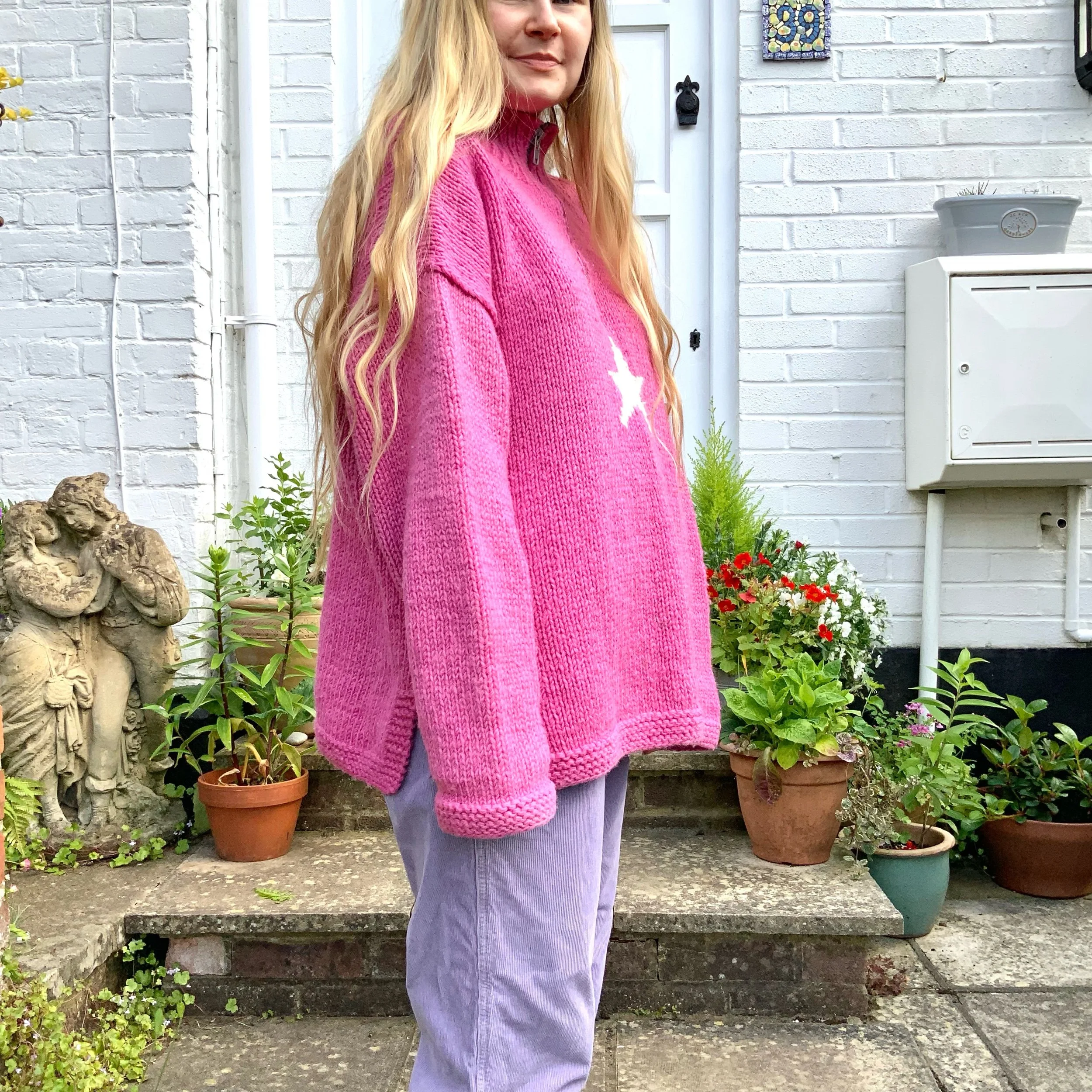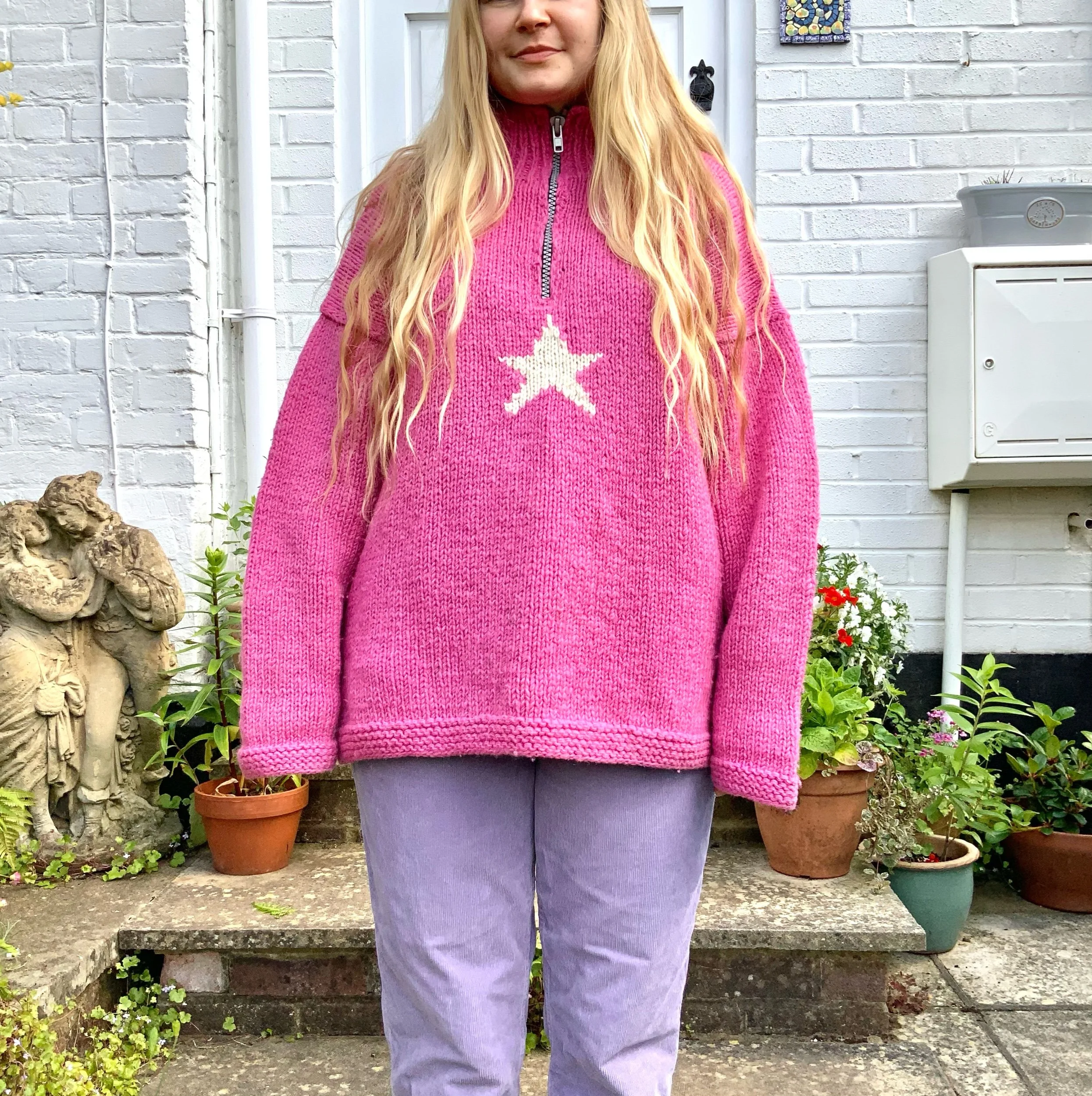 Handmade vintage jumper by the brand Pachamama. 💗 Made from natural wool. No size label, but fits approximately a size 2XL — see measurements below. :) Shown on a size S, 5’4”. In good vintage condition, a few light marks shown in the last pics. ✨
